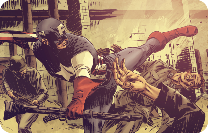 O Capitão América surgiu durante a Segunda Guerra Mundial, para combater nazistas, mas foi revivido na década de 60 e liderou os Vingadores. O Capitão América é a identidade heroica de Steve Rogers. Além disso, é considerado como o primeiro Vingador.