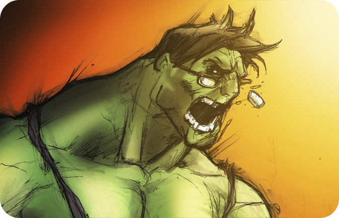 Na história original dos quadrinhos, o Hulk é um selvagem e poderoso alter ego do Dr. Robert Bruce Banner, um cientista que foi atingido por raios gama enquanto salvava um adolescente durante o teste militar de uma bomba por ele desenvolvida.